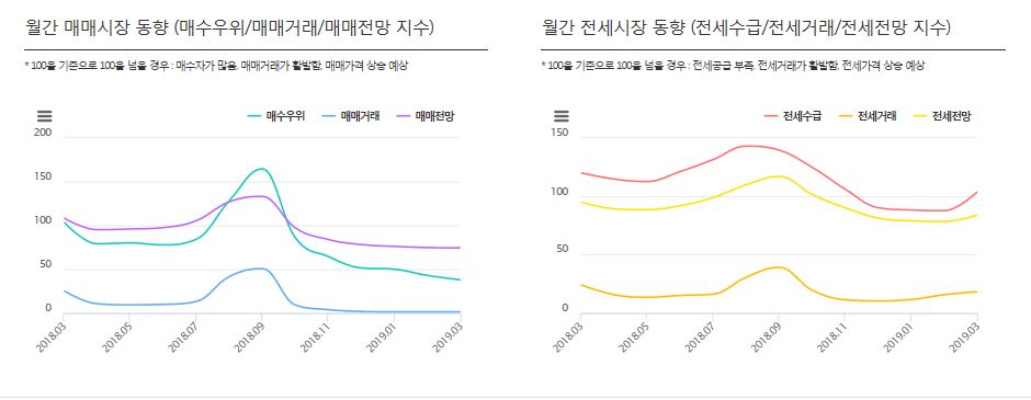 2) KB부동산 특징 : 과거 주택은행에서 수행하던 주택 가격 데이터 수집 업무를 지속하고 있으며, 1986년 1월부터 현재까지의 주택가격 현황을 한눈에 보실 수 있다. (지수 기준시점 : 2019년 1월 = 100.0 (2019년 1월부터 표본 변경 확대 적용, 지수 기준시점 변경))